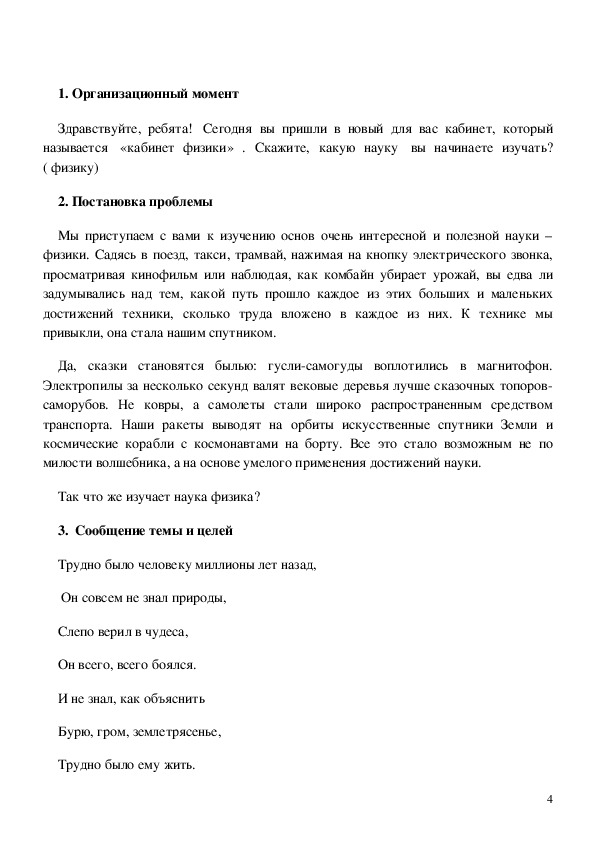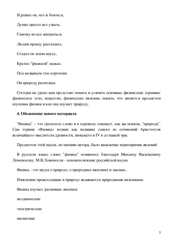 Познакомить обучающихся с предметом физика, с первичными понятиями в физике (тело, вещество, явление), с методами изучения явлений.