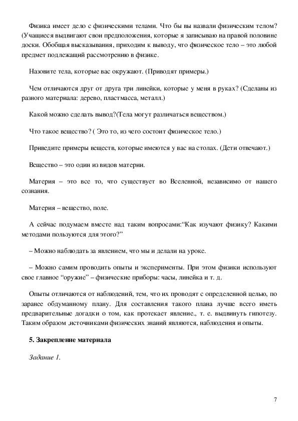 доски. Обобщая высказывания, приходим к выводу, что физическое тело – это любой