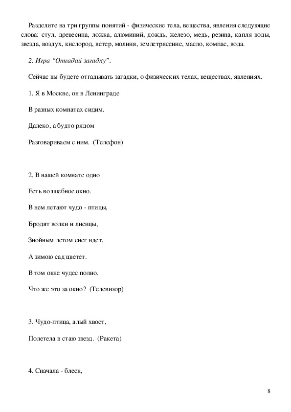 Сейчас вы будете отгадывать загадки, о физических телах, веществах, явлениях.