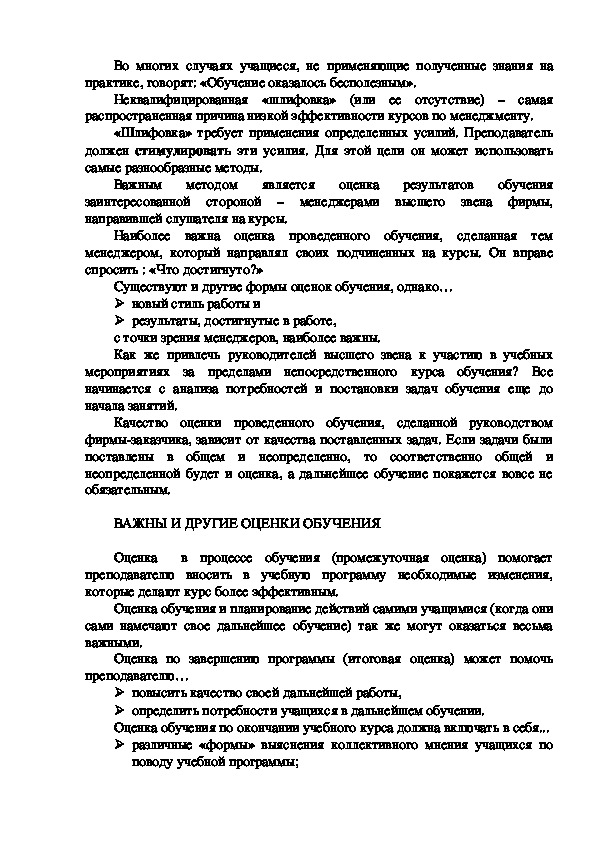 Наиболее важна оценка проведенного обучения, сделанная тем