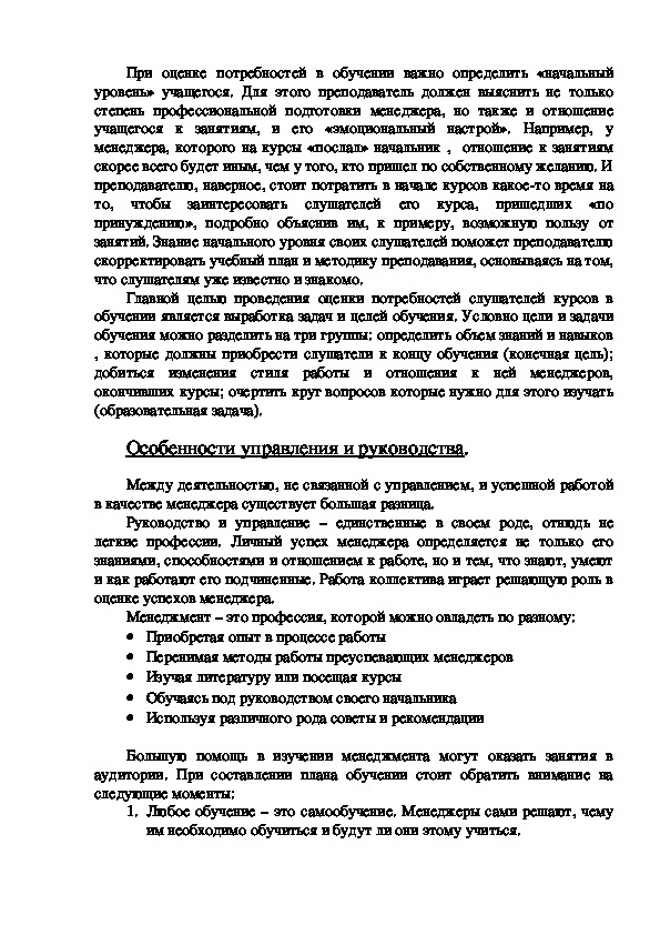 менеджмента и соответственно на обучение менеджменту, являются одной из