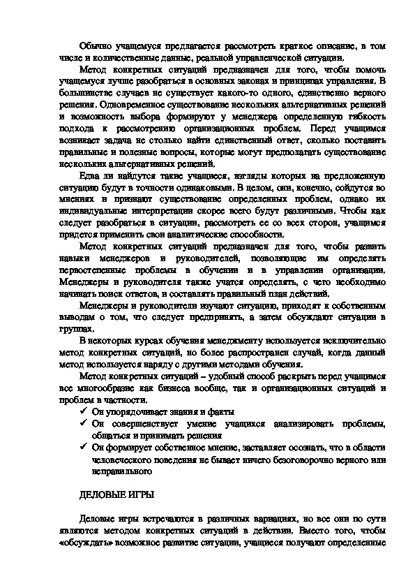 Большую помощь в изучении менеджмента могут оказать занятия в