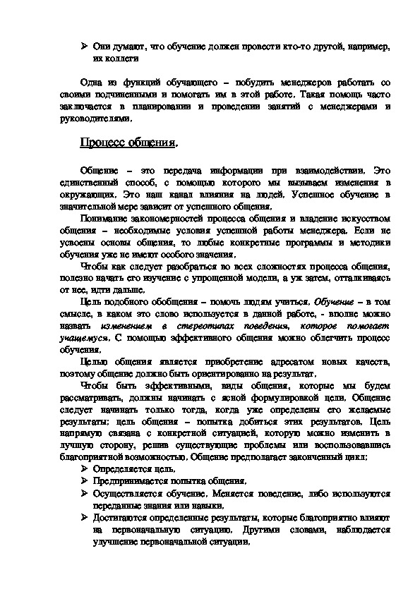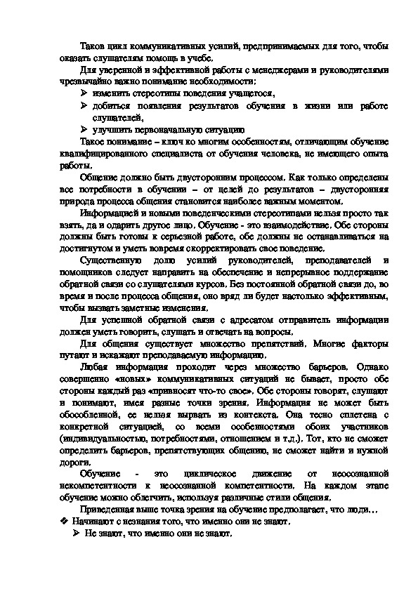 стадиях цикла обучения общение играет существенную роль. Например, для