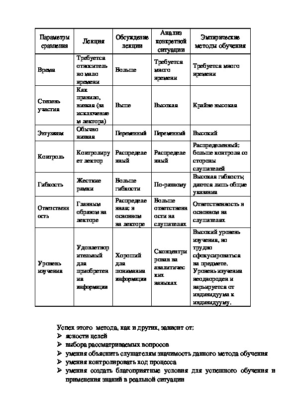 обучения можно разделить на три группы: определить объем знаний и навыков