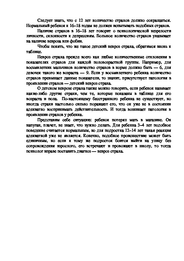 взрослые — социальные: опоздать в школу, смерти родителей.Следует знать, что с 12 лет количество страхов должно сокращаться.