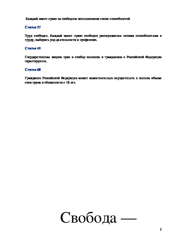 СВОБОДА (из толкового словаря) – это закреплённая в конституции или ином акте возможность