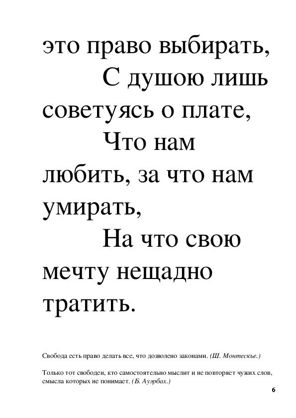— напечатать крупными буквами стихотворение о свободе и разрезать его на отдельные