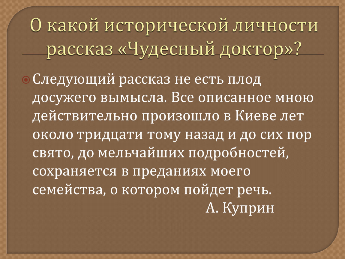 О какой исторической личности рассказ «Чудесный доктор»?