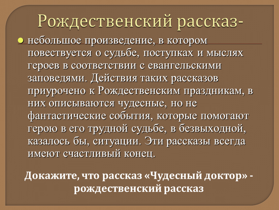 Докажите, что рассказ «Чудесный доктор» - рождественский рассказ