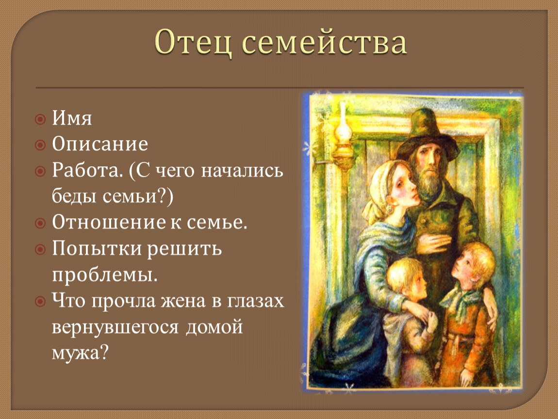 Опишите бедственное положение семьи