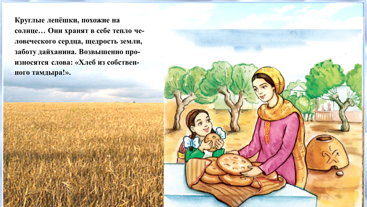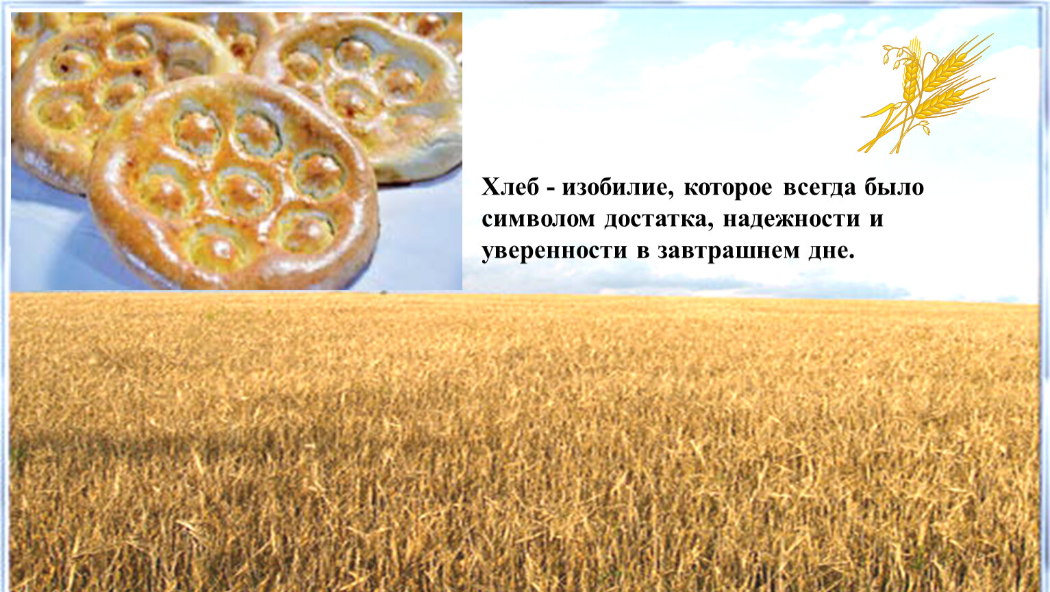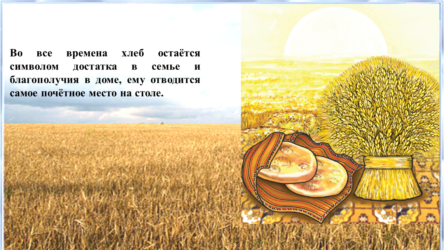 Во все времена хлеб остаётся символом достатка в семье и благополучия в доме, ему отводится самое почётное место на столе.
