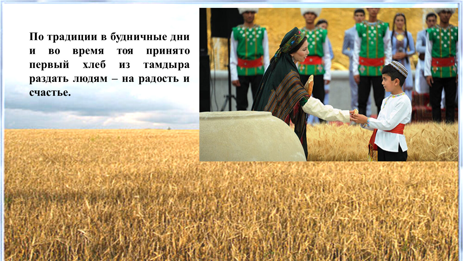 По традиции в будничные дни и во время тоя принято первый хлеб из тамдыра раздать людям – на радость и счастье.