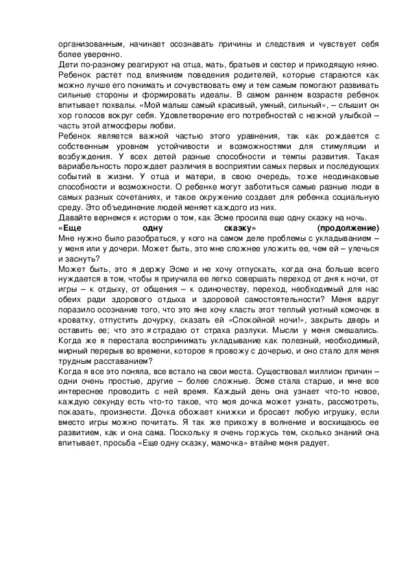 Давайте вернемся к истории о том, как Эсме просила еще одну сказку на ночь.