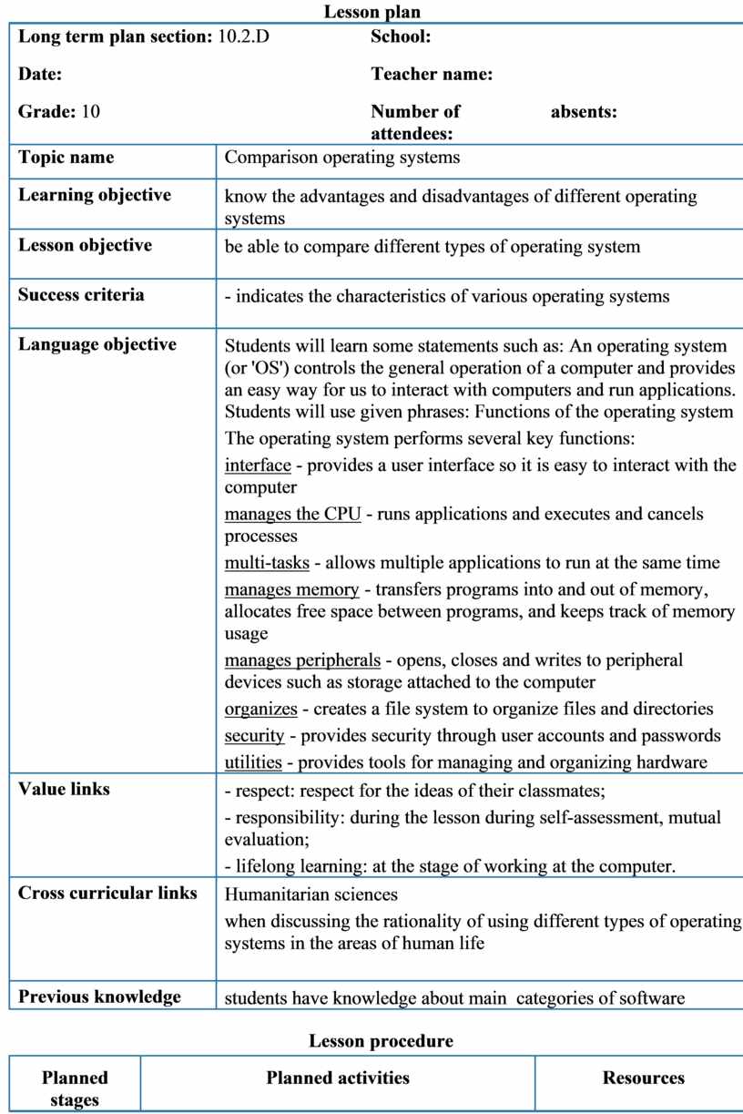 - respect: respect for the ideas of their classmates; - responsibility: during the lesson during self-assessment, mutual evaluation; - lifelong learning: at the stage of working at the computer. |