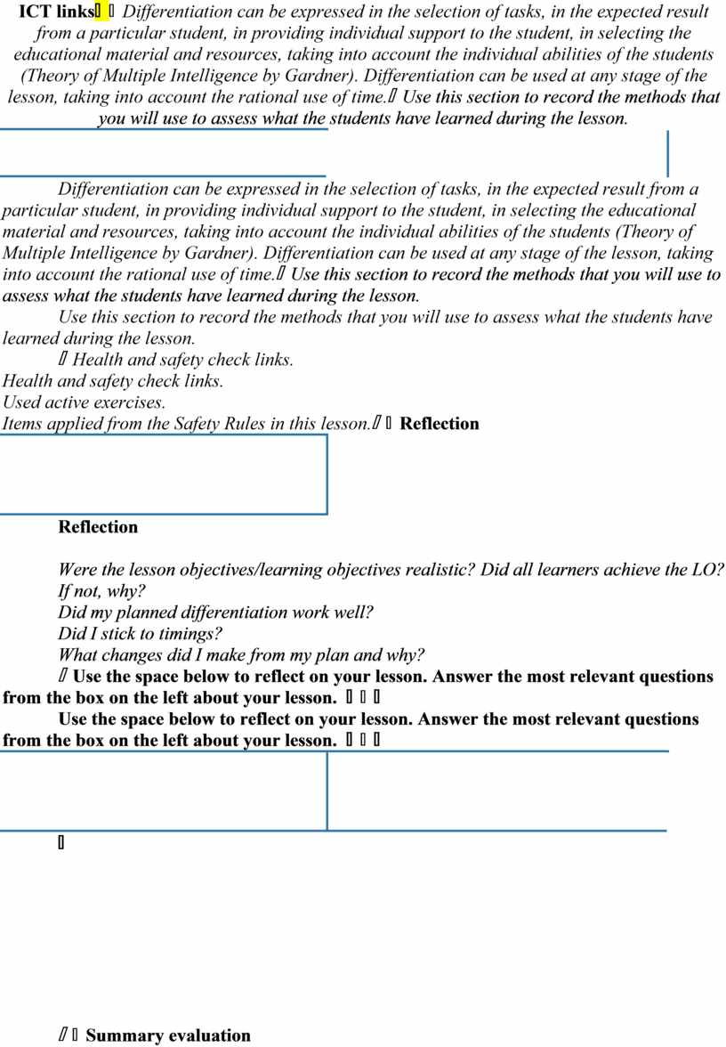 Differentiation can be expressed in the selection of tasks, in the expected result from a particular student, in providing individual support to the student, in selecting the educational material and resources, taking into account the individual abilities of the students (Theory of Multiple Intelligence by Gardner). Differentiation can be used at any stage of the lesson, taking into account the rational use of time. |