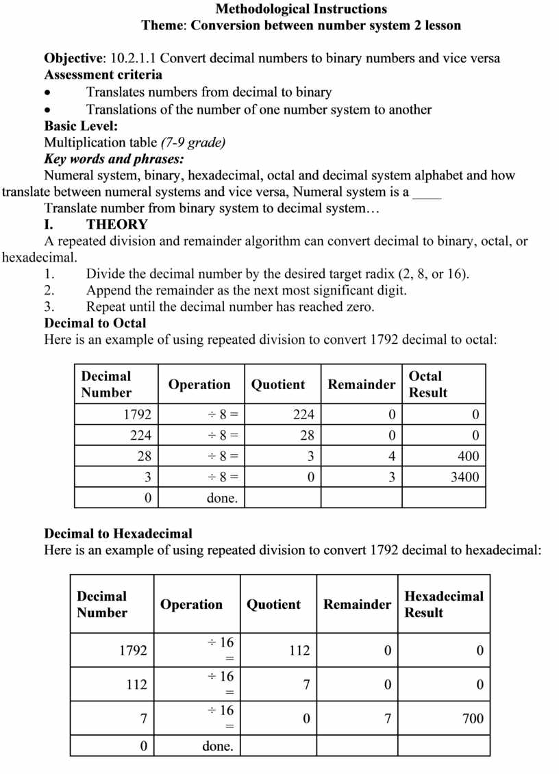 Theme: Conversion between number system 2 lesson