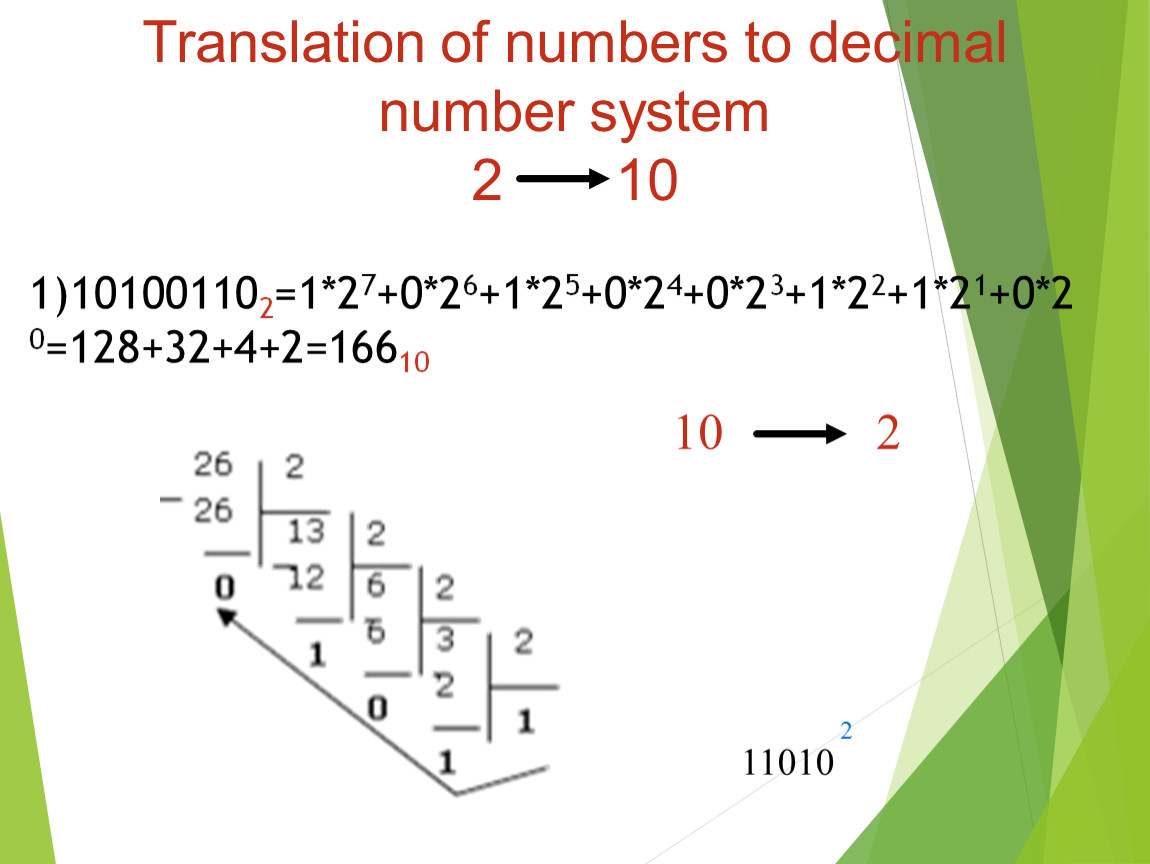 Translation of numbers to decimal number system2 10