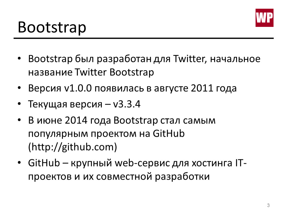 В июне 2014 года Bootstrap стал самым популярным проектом на GitHub(http://github.com)