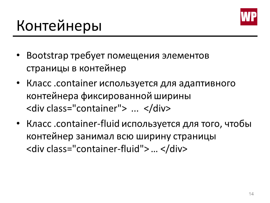 Класс .container используется для адаптивного контейнера фиксированной ширины