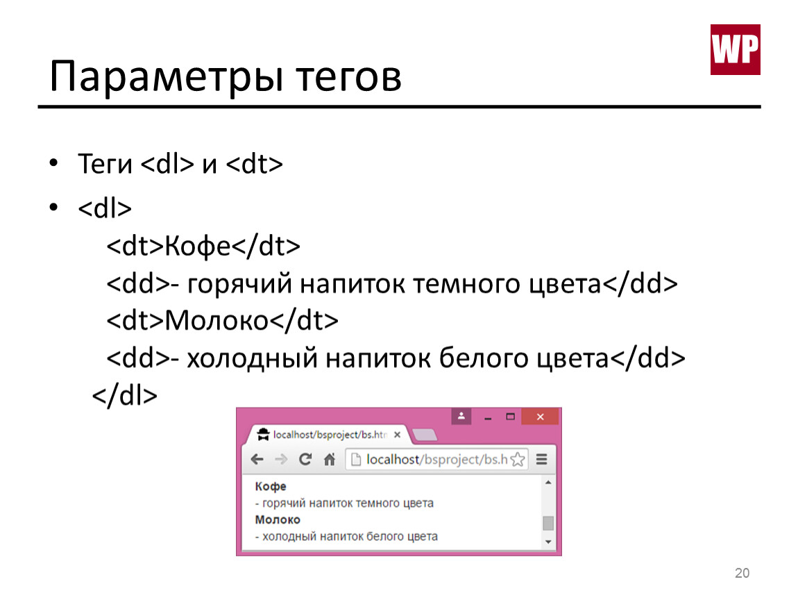 Параметры тегов