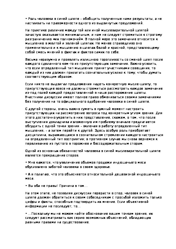 мышлению в желтой и зеленой шляпах. Не менее справедливо оно