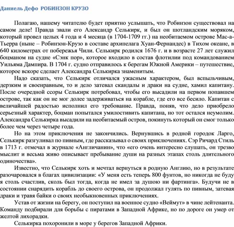 Полагаю, нашему читателю будет приятно услышать, что Робинзон существовал на самом деле! Правда звали его Александр Селькирк, и был он шотландским моряком, который провел целых 4 года и 4 месяца (в 1704-1709 гг.) на необитаемом острове Мас-а-Тьерра (ныне – Робинзон-Крузо в составе архипелага Хуан-Фернандес) в Тихом океане, в 640 километрах от побережья Чили. Селькирк родился 1676 г. и в возрасте 27 лет служил боцманом на судне «Сэнк пор», которое входило в состав флотилии под командованием Уильяма Дампира. В 1704 г. судно отправилось к берегам Южной Америки – путешествие, которое вскоре сделает Александра Селькирка знаменитым.