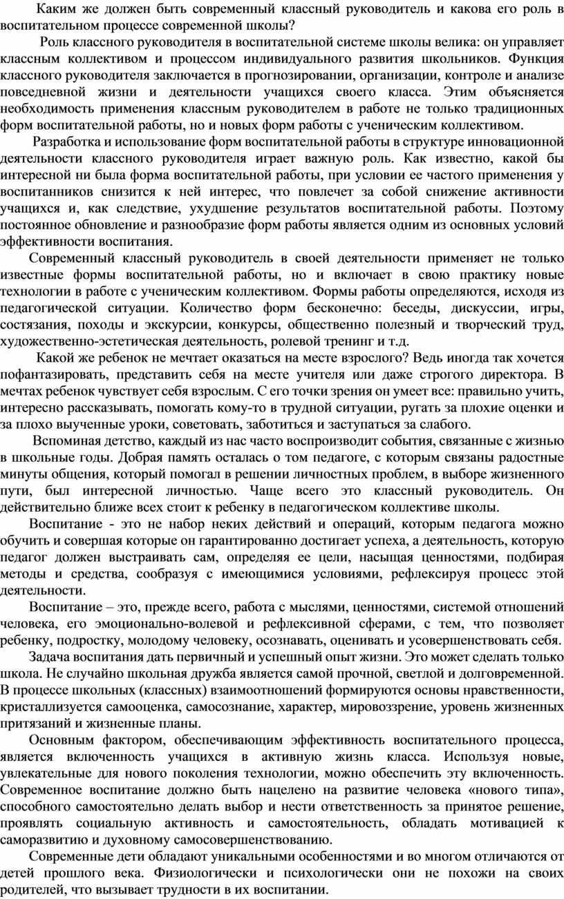 Каким же должен быть современный классный руководитель и какова его роль в воспитательном процессе современной школы?