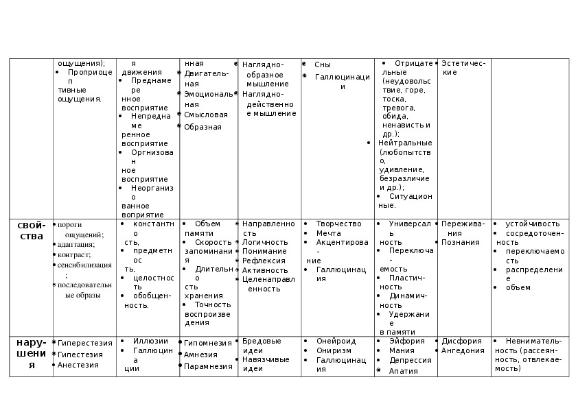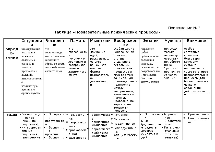 «Ощущения», «Восприятие», «Память», «Мышление»,