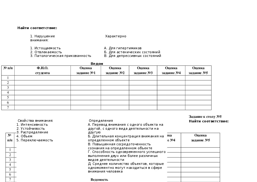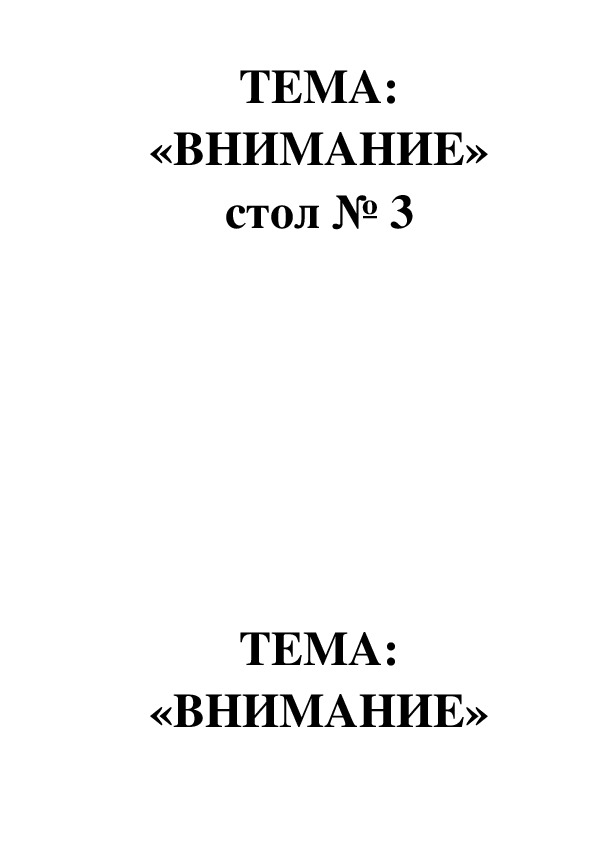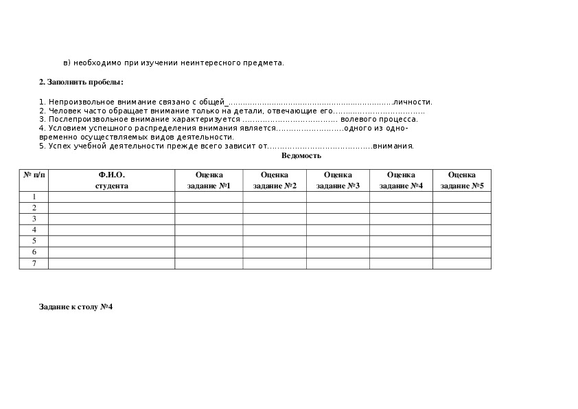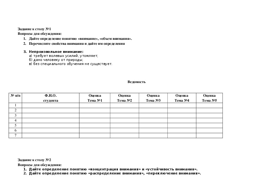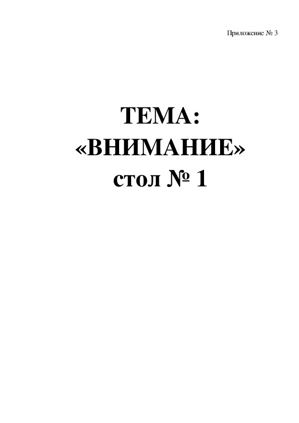«ВНИМАНИЕ»стол № 5Задание к столу №1