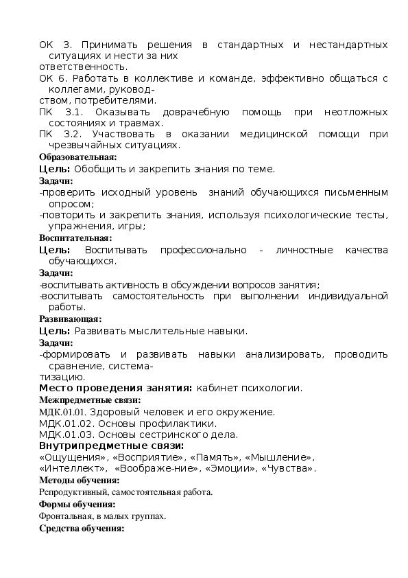 ПК 3.1. Оказывать доврачебную помощь при неотложных