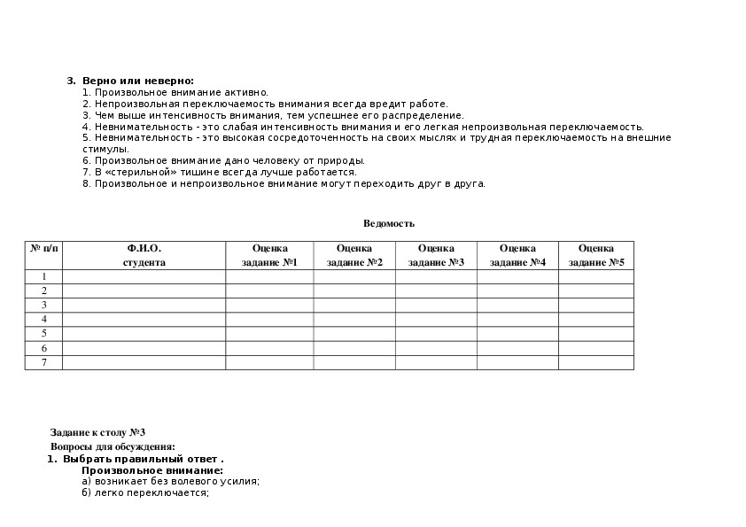 2. Дайте определение понятию «распределение внимания», «переключение внимания».3. Верно или неверно: