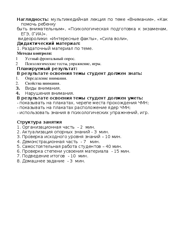 Наглядность: мультимедийная лекция по теме «Внимание», «Как