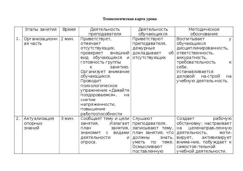 8. Домашнее задание - 3 мин.Технологическая карта урока
