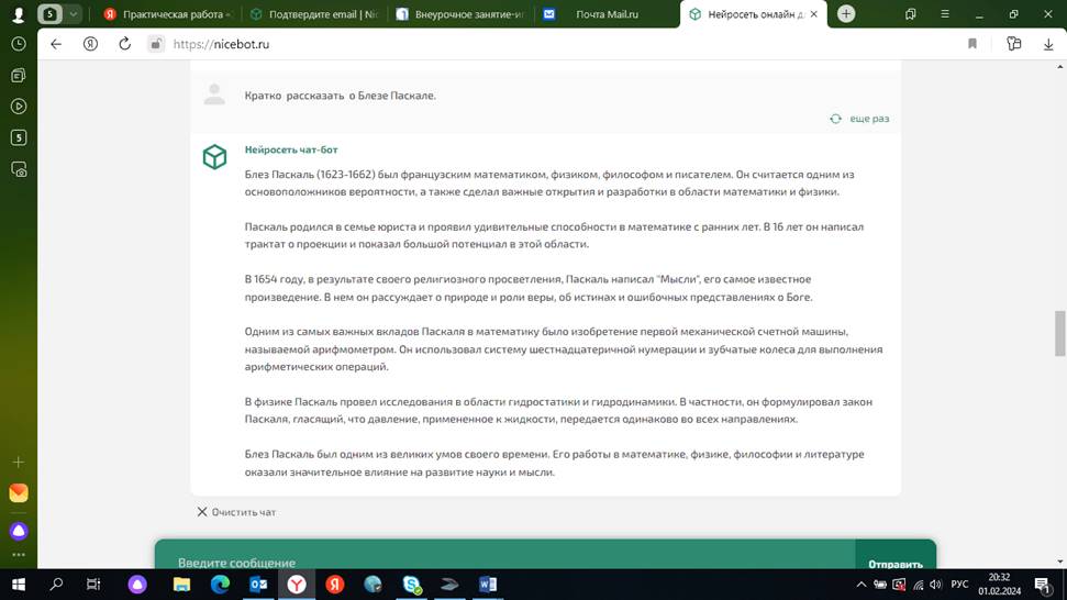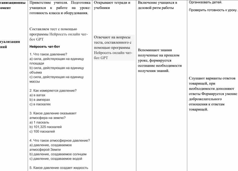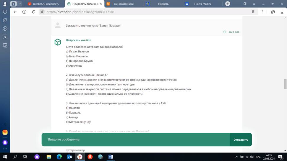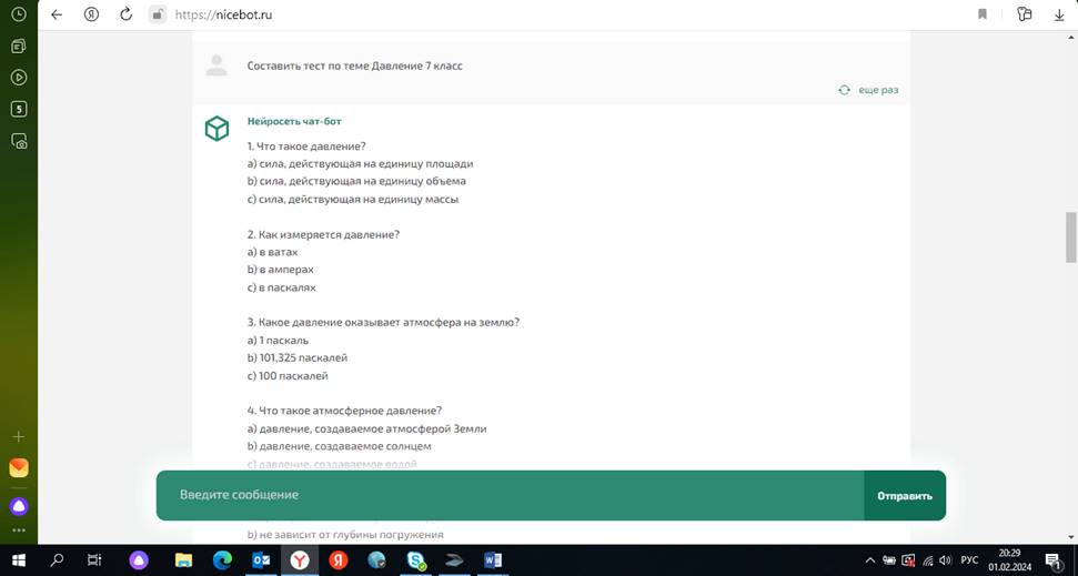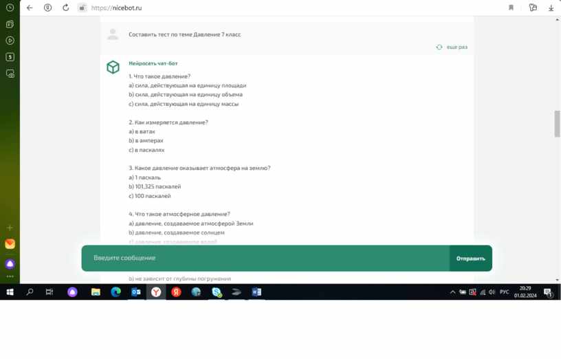 Составляем тест с помощью программы Нейросеть онлайн чат-бот GPT Нейросеть чат-бот 1. Что такое давление?