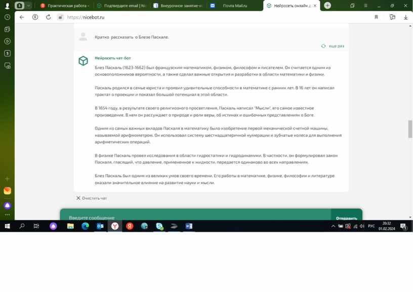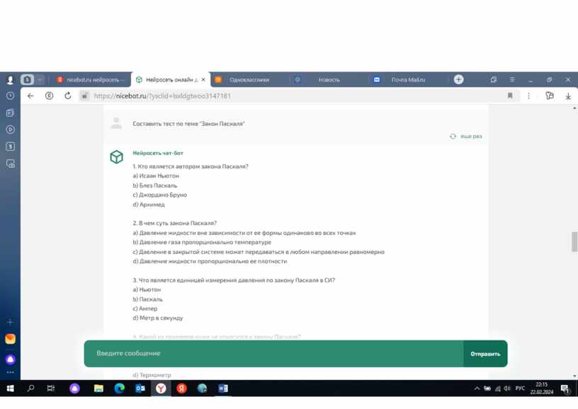 Составить тест по теме "Закон Паскаля" Нейросеть чат-бот 1. Кто является автором закона Паскаля?