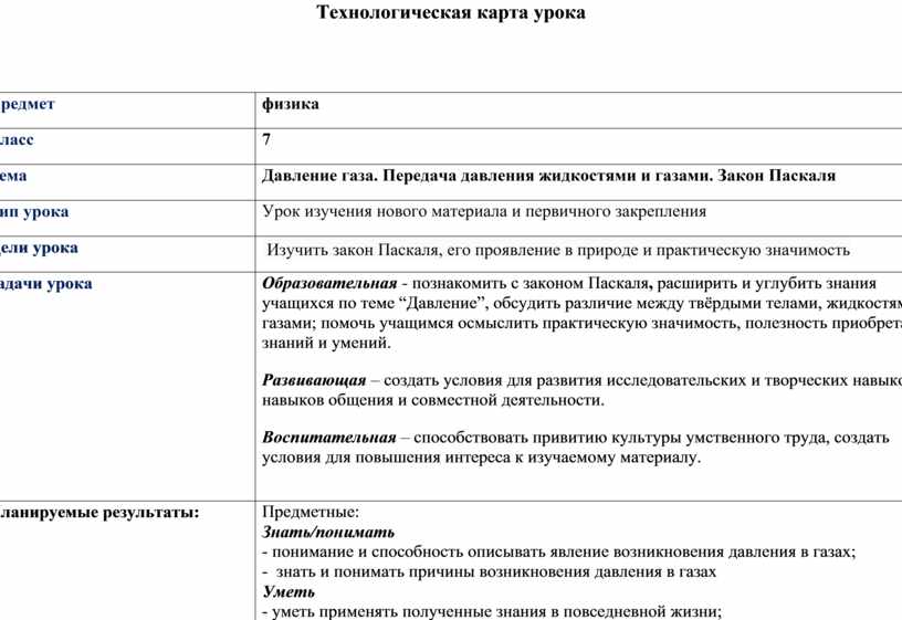 Технологическая карта урока