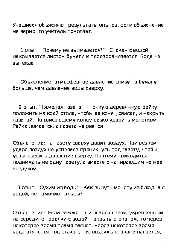 4Учащиеся объясняют результаты опытов. Если о6ъяснение