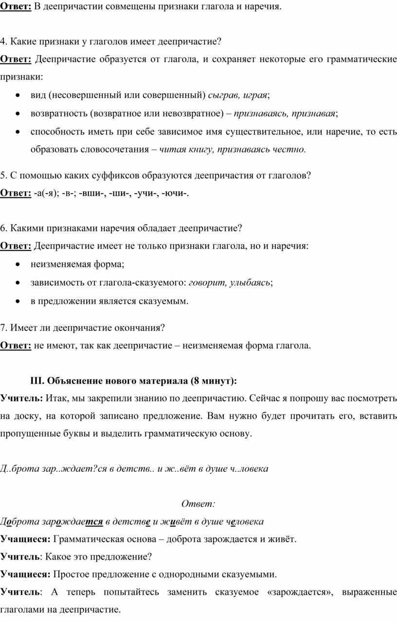 Ответ: В деепричастии совмещены признаки глагола и наречия.