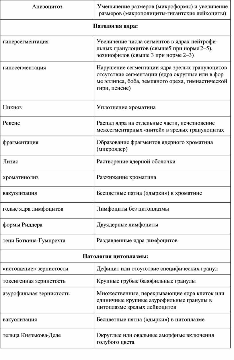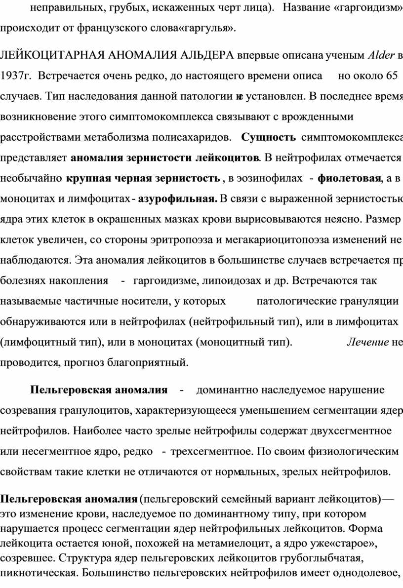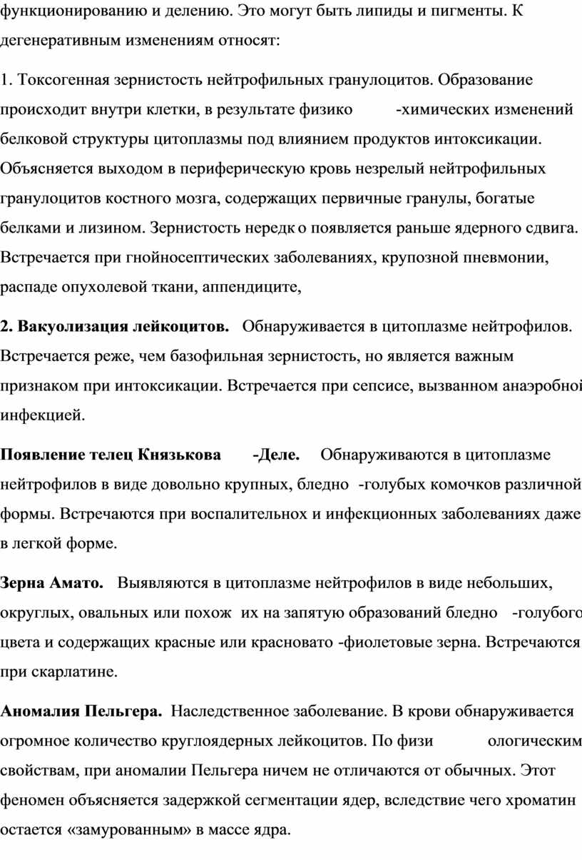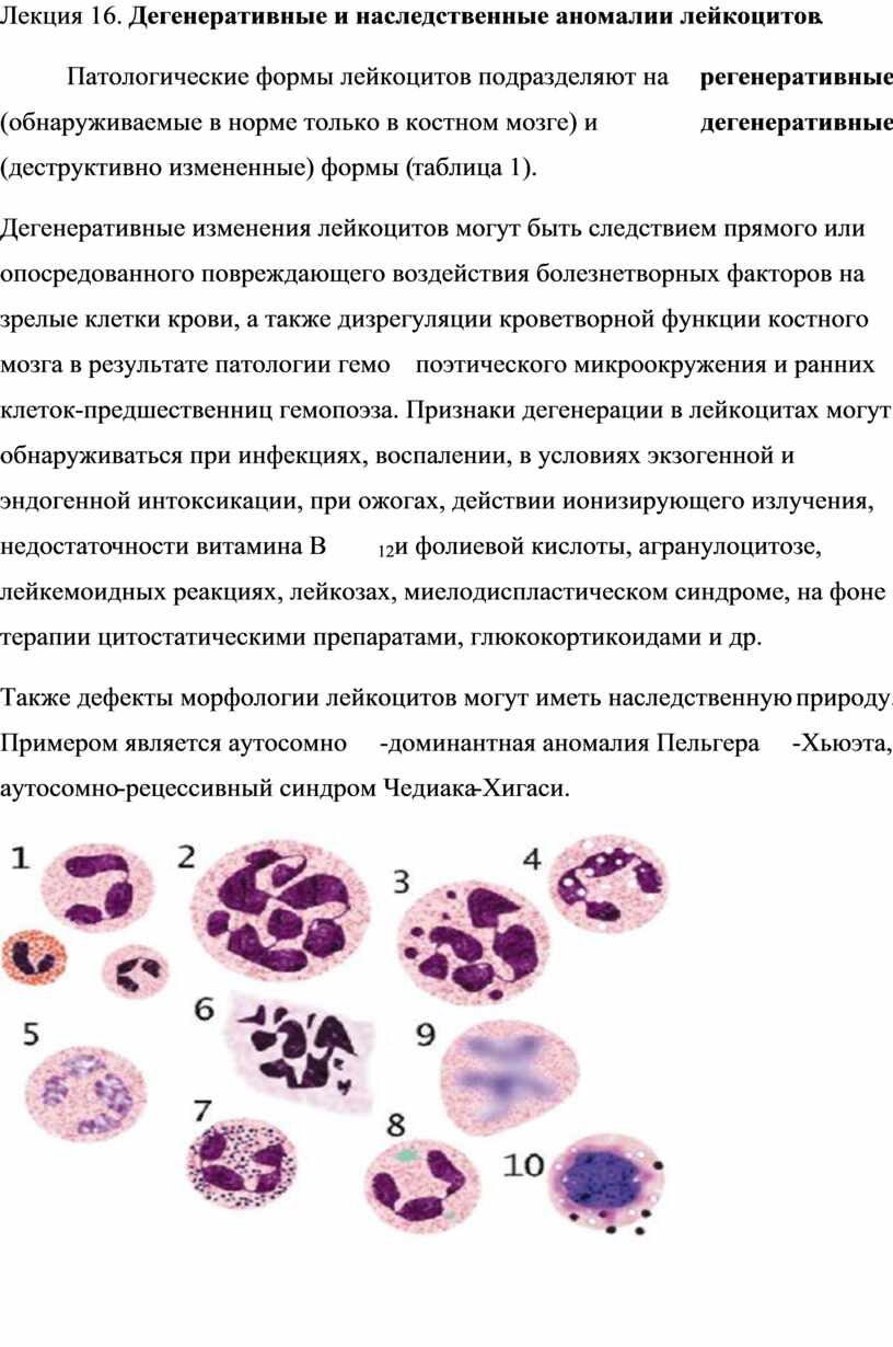 «Дегенеративные и наследственные аномалии лейкоцитов»