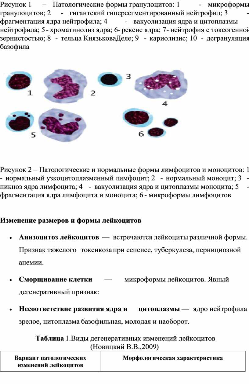 различной формы, свободные от специфических гранул. Эти изменения лейкоцитов