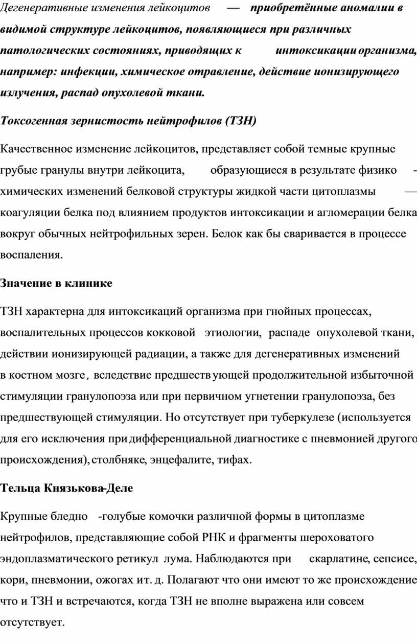 Тема занятия: Дегенеративные изменения лейкоцитов. Наследственные аномалии лейкоцитов.
