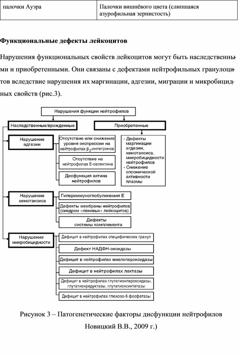 Нарушения функциональных свойств лейкоцитов могут быть наследственны-ми и приобретенными. Они связаны с дефектами нейтрофильных гранулоци-тов вследствие нарушения их маргинации, адгезии, миграции и микробицид-ных свойств (рис.3).