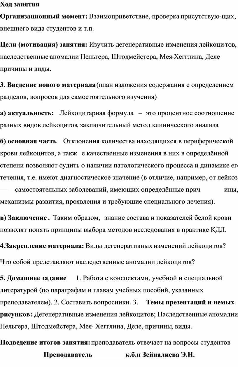 2.Цели (мотивация) занятия: Изучить дегенеративные изменения лейкоци-тов, наследственные аномалии Пельгера, Штодмейстера, Мея-Хегглина, Деле причины и виды.