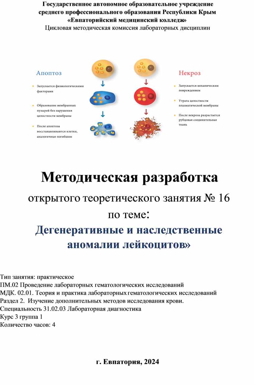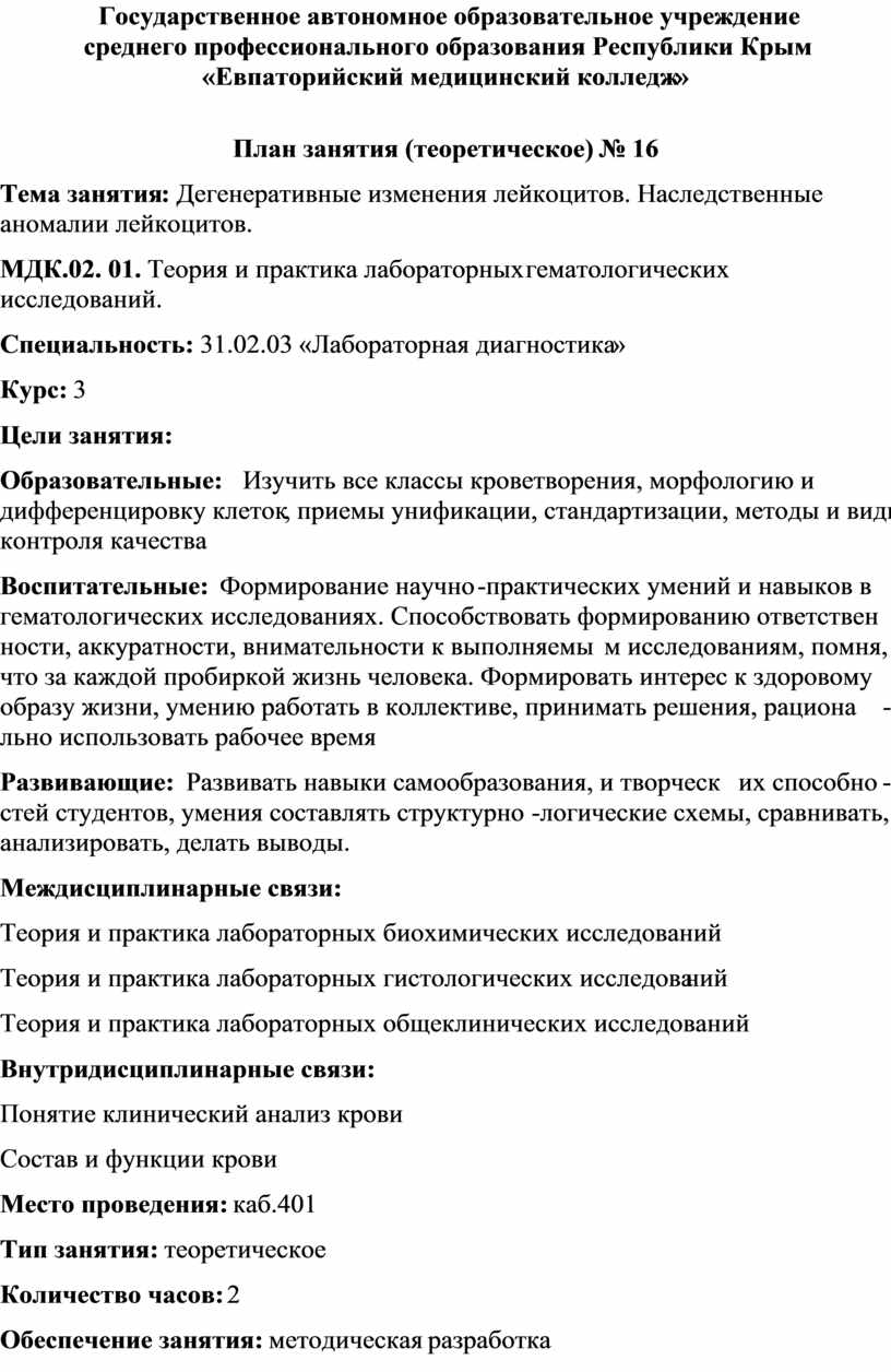 МДК. 02.01. Теория и практика лабораторных гематологических исследований
