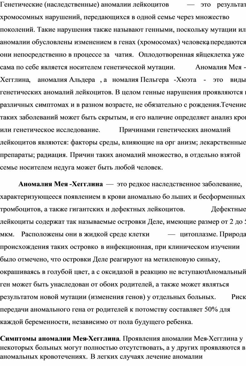 по себе является носителем генетической мутации. Аномалия Мея-Хегглина, аномалия