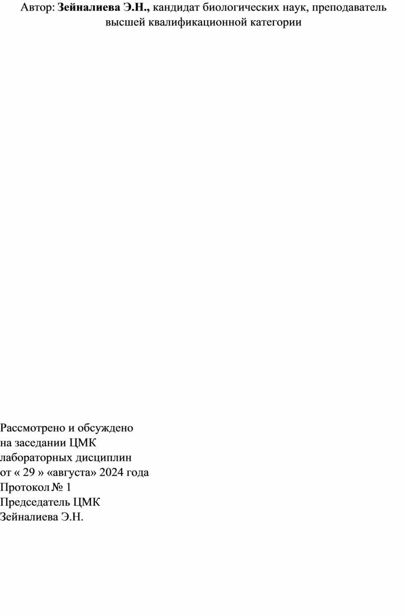 Автор: Зейналиева Э.Н., кандидат биологических наук, преподаватель высшей квалификационной категории