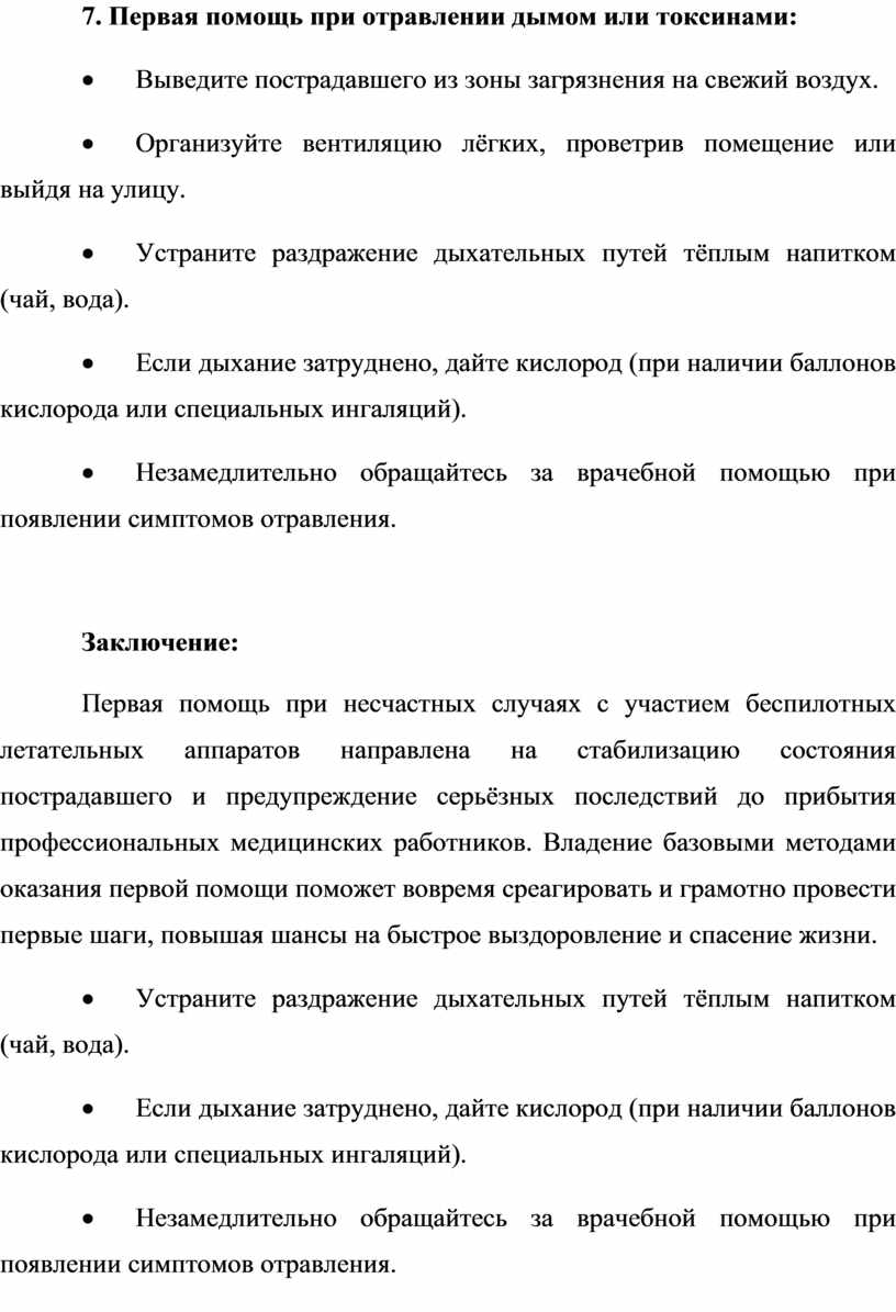 Методы оказания первой помощи пострадавшим при несчастных случаях с беспилотными летательными аппаратами (БПЛА):