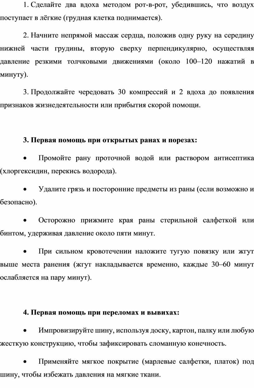При возникновении несчастных случаев с участием беспилотных летательных аппаратов важно помнить, что правильный алгоритм действий и умение оказать первую помощь могут сохранить здоровье и даже жизнь пострадавшего. Ниже приведены пошаговые рекомендации по оказанию первой помощи при различных типах травм, связанных с воздействием БПЛА.