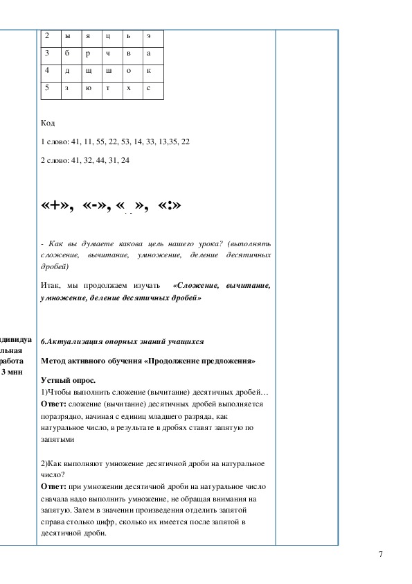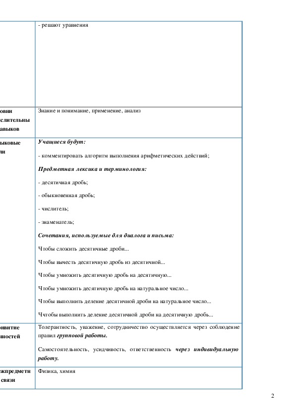 выполнять арифметические действия с десятичными дробями при решении