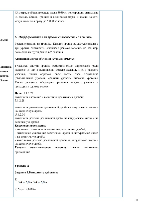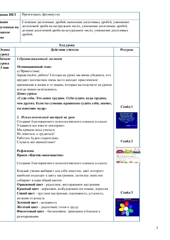План открытого урока по математике